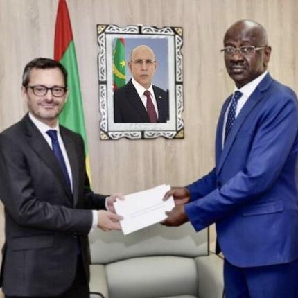 أخبار اليوم.   تسلم وزير الخارجية محمد سالم ولد مرزوك، اليوم بنواكشوط، نسخة من أوراق اعتماد السفير الفرنسي لدى موريتانيا إيمانويل بيسنييه.