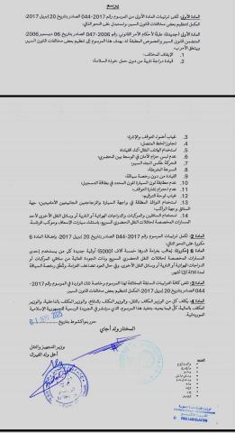 أخبار اليوم. زادت الحكومة من القيود المفروضة على السائقين بعد صدور مرسوم جديد، وقّعه الوزير الأول المختار ولد آجاي، يقضي بتعديل إحدى مواد المرسوم السابق المنظم لحركة المرور.