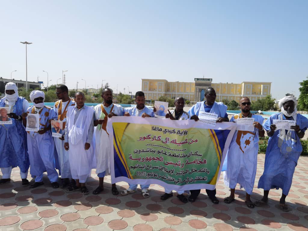 ورفع المحتجون لافتات كُتب عليها: “ولاية كيدي ماغا، من لمسيله إلى كاركور، سكان مقاطعة غابو يناشدون الرئيس بالتدخل المباشر لإطلاق سراح أبنائهم المعتقلين في مالي منذ يوليو 2025”.
