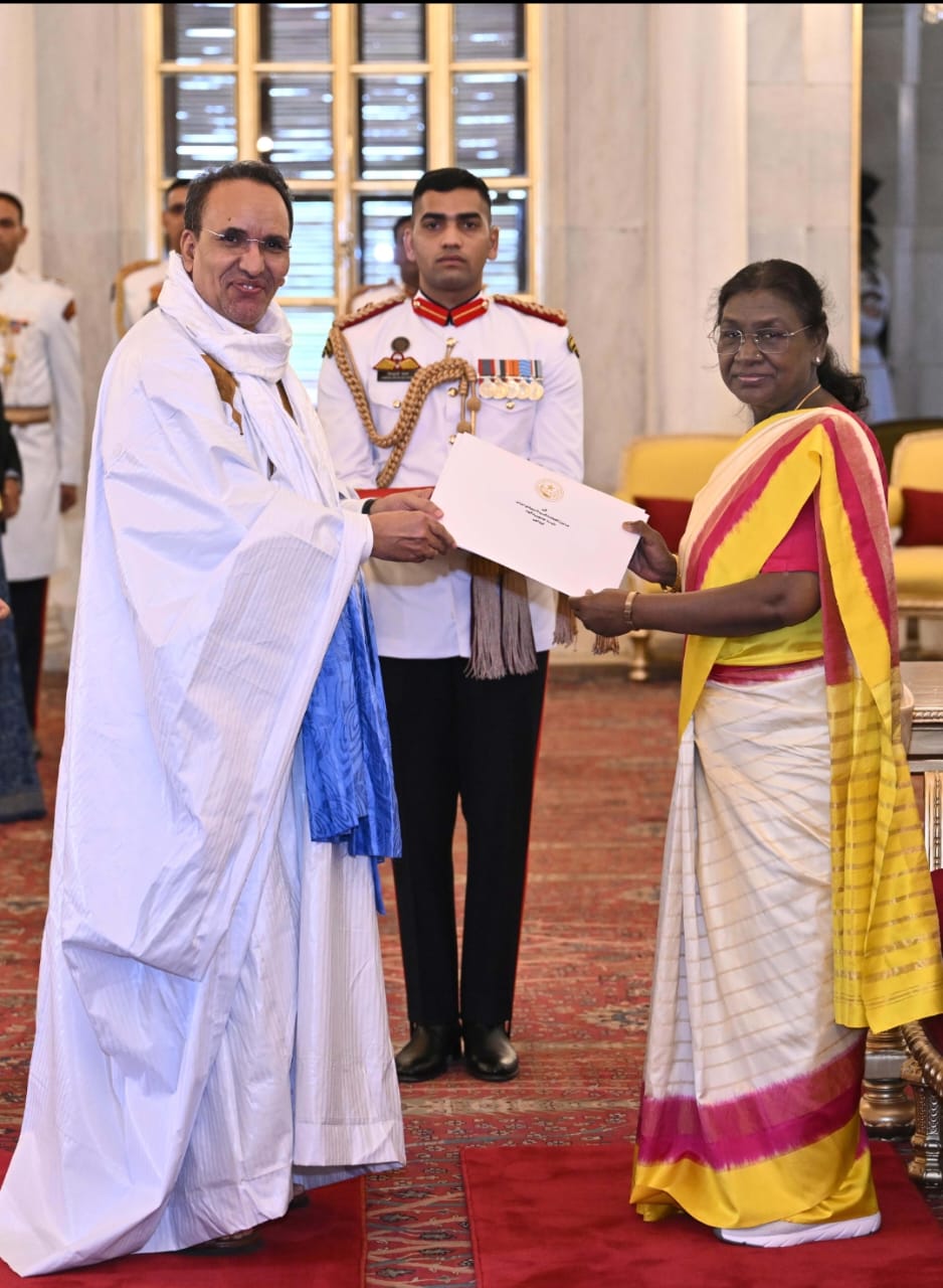 أخباراليوم – قدم السفير الموريتاني في الهند أحمدو ولد أحمدو أوراق اعتماده لرئيسة جمهورية الهند دروبادي مورمو، باعتباره سفيرا فوق العادة وكامل السلطة لموريتانيا في الهند.