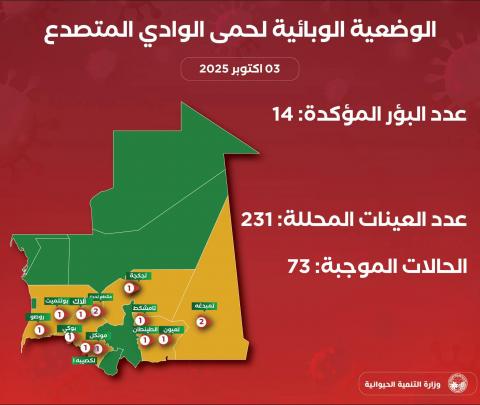 أخبار اليوم.  أعلنت وزارة التنمية الحيوانية البارحة، تسجيل بؤرتين جديدتين لوباء حمى الوادي المتصدع بين المواشي، في مقاطعتي بوغي والطينطان.