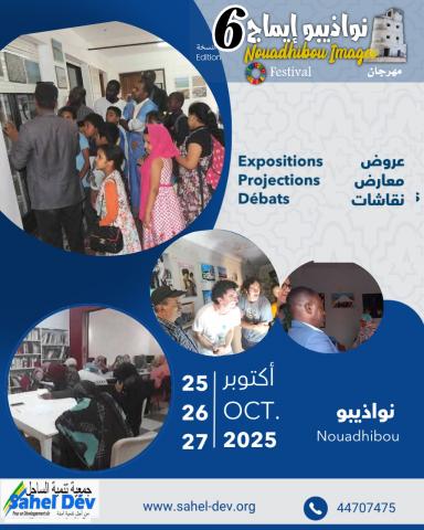 يسر جمعية تنمية الساحل (Sahel Dév) أن تعلن عن تنظيم النسخة السادسة من مهرجان “نواذيبو إيماج”، وذلك خلال الفترة من 25 إلى 27 أكتوبر 2025، بمدينة نواذيبو.