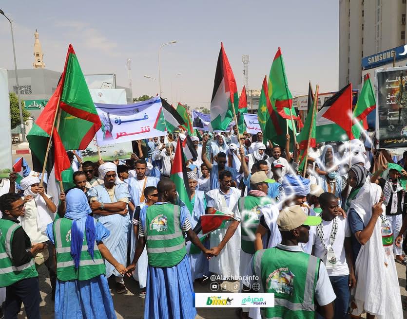 أخباراليوم. – نظم الرباط الوطني لنصرة الشعب الفلسطيني عقب صلاة الجمعة مسيرة حاشدة في نواكشوط احتفاءً بوقف الحرب على غزة.