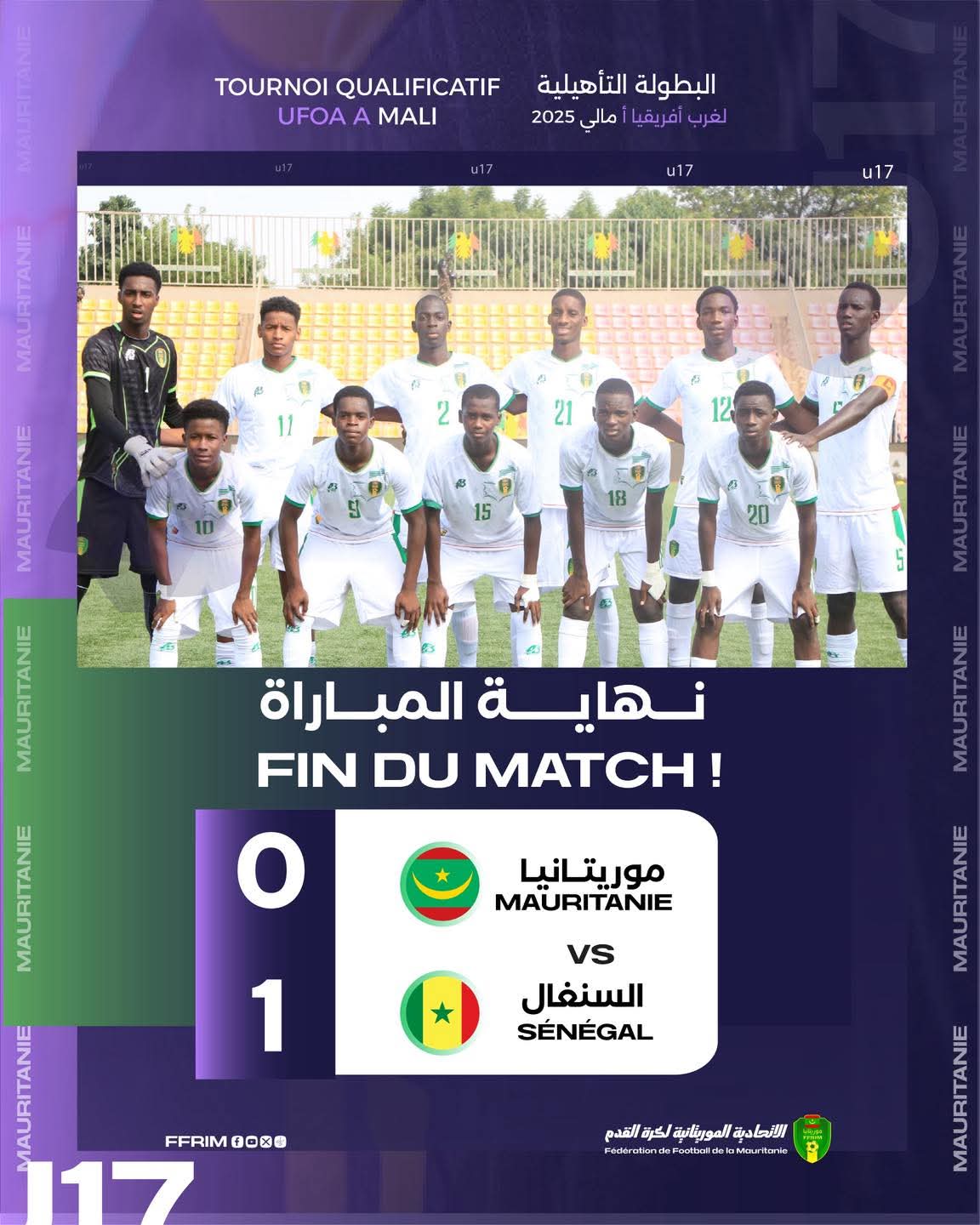 أخباراليوم. ودع المنتخب الوطني الموريتاني تحت 17 سنة بطولة اتحاد غرب إفريقيا “أ” بعد خسارته من نظيره السنغالي بهدف دون رد، في المباراة التي جمعتهما ضمن الجولة الثالثة من منافسات البطولة.