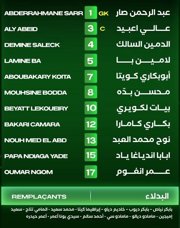 وضمت قائمة المرابطون، كلا من: عبد الرحمن صار، عالي عبيد، الدمين السالك، الأمين با، أبوبكر كويتا، محسن بده، بيات لكويري، بكاري كمارا، نوح محمد العبد، أبابا اندياغا ياد، عمر انغوم.