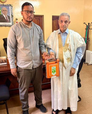 أخبار اليوم. قدم الدكتور بزيد مولاي أحمد بابا صباح اليوم جهاز مزيل الرجفان القلبي الآلي (DAE) هدية لبلدية نواذيبو، حيث استقبله النائب والعمدة القاسم ولد بلالي تقديرًا لهذه المبادرة الإنسانية.