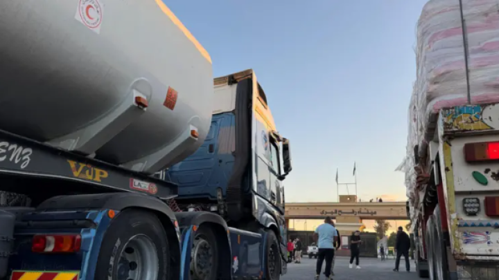 وأشار المصدر إلى تسليم الشاحنات إلى الأمم المتحدة والهلال الأحمر الفلسطيني واللجنة المصرية بقطاع غزة.