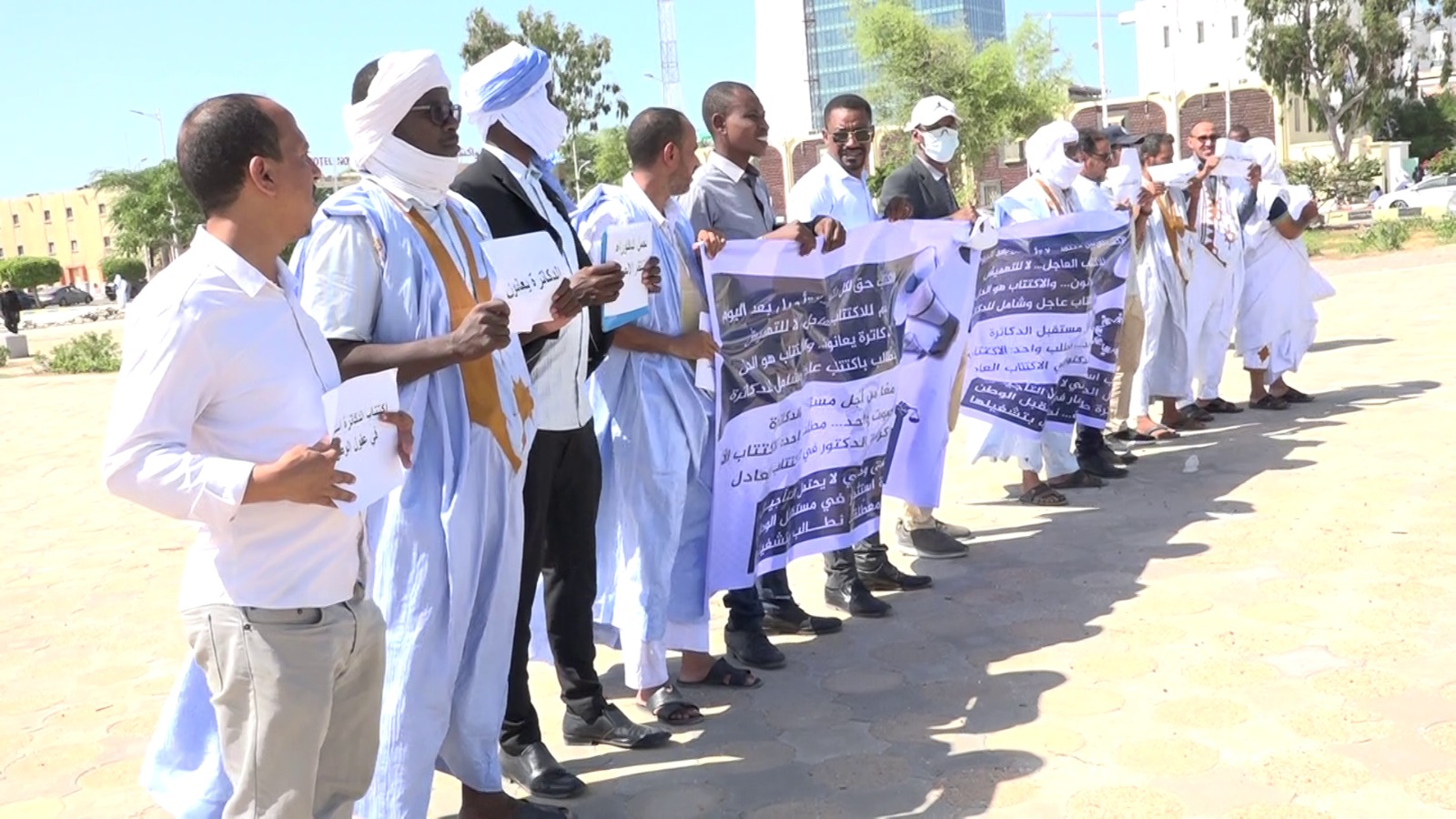 أخبار اليوم. احتج عدد من الدكاترة المتعاونين مع مؤسسات التعليم العالي، اليوم، صباح اليوم الثلاثاء أمام القصر الرئاسي في نواكشوط، حيث طالبوا بإطلاق اكتتاب شامل وشفاف يلبي حاجات مؤسسات التعليم العالي من الأساتذة والباحثين.
