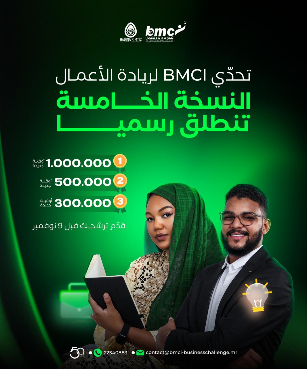 أخباراليوم – أطلق البنك الموريتاني للتجارة الدولية BMCI النسخة الخامسة من “تحدي BMCI للأعمال”، والذي بدأه منذ 2021 برعاية مؤسسة سيدي محمد عباس، وتنظمه حاضنة الشركات Hadina RIMTIC، وأكد تخصيص 18 مليون أوقية قديمة جوائز للفائزين الثلاثة الأوائل.