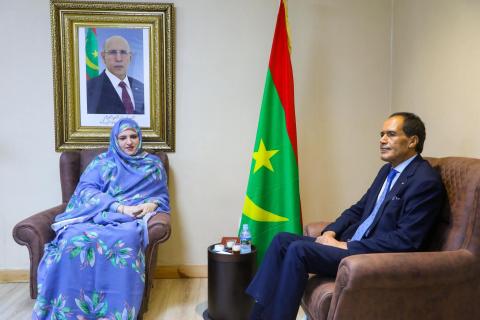 أخبار اليوم. استقبلت وزيرة العمل الاجتماعي والطفولة والأسرة، السيدة صفية انتهاه، صباح اليوم الجمعة بمكتبها في نواكشوط، سعادة سفير المملكة المغربية الشقيقة المعتمد لدى بلادنا، السيد حميد شبار.
