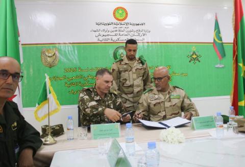 أخبار اليوم. انعقد في مدينة الزويرات يومي 29 و30 أكتوبر 2025 الاجتماع الأمني التنسيقي الثالث بين الجيشين الموريتاني والجزائري، بإشراف العقيد الشيخ سيدي بوي السالك، قائد المنطقة العسكرية الثانية، واللواء مراجي كمال، قائد القطاع العملياتي الجنوبي بتيندوف.