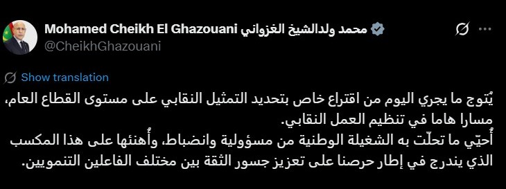 ووصف ولد الغزواني في تغريدة عبر منصة “إكس” (تويتر سابقا) هذه الانتخابات بأنها مكسب للعمال.