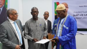 أخبار اليوم. أشرف معالي وزير الثقافة والفنون والاتصال والعلاقات مع البرلمان، الناطق باسم الحكومة، السيد الحسين ولد مدو، ظهر اليوم، بمباني إذاعة موريتانيا، على حفل توقيع عقود العمل الخاصة بالتسوية النهائية لملف المتعاونين في الإعلام العمومي، تنفيذاً للتعليمات السامية لفخامة رئيس الجمهورية الرامية إلى إنهاء هذا الملف بشكل عادل وشامل.