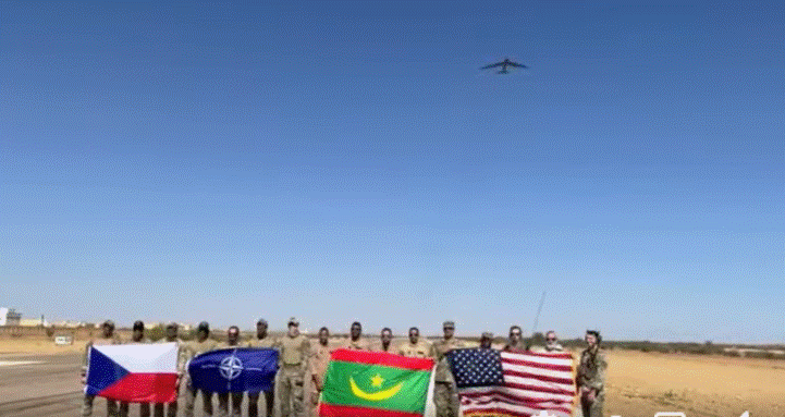 وقالت السفارة الأمريكية في نواكشوط، إن موجّهي الهجمات المشتركة من سلاح الجو الأميركي وضباطا من القوات الجوية الموريتانية نفّذوا يوم 19 نوفمبر الجاري، تمرينًا للتكامل بين الجوّ والبرّ، بمشاركة قاذفة B-52 من قوة القاذفات الأميركية.