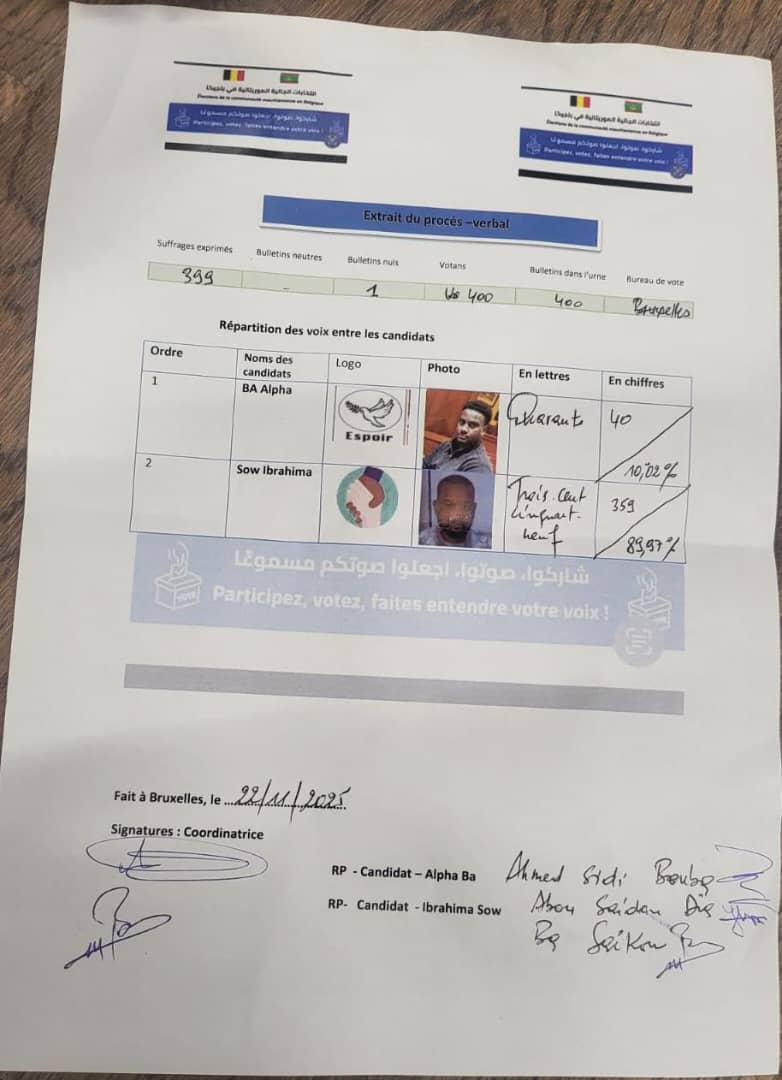 أخباراليوم. – فاز المرشح إبراهيم صو في انتخابات رئاسة الجالية الموريتانية في بلجيكا.