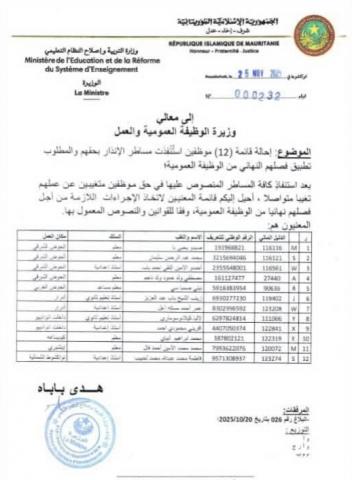 وأوضحت وزارة التربية في رسالة مؤرخة بتاريخ، 25 نوفمبر ،2025، أن قرار فصل المدرسين من العمل، جاء بعد استنفاذ مساطر الإنذار بحقهم، بعد تغيبهم عن العمل.