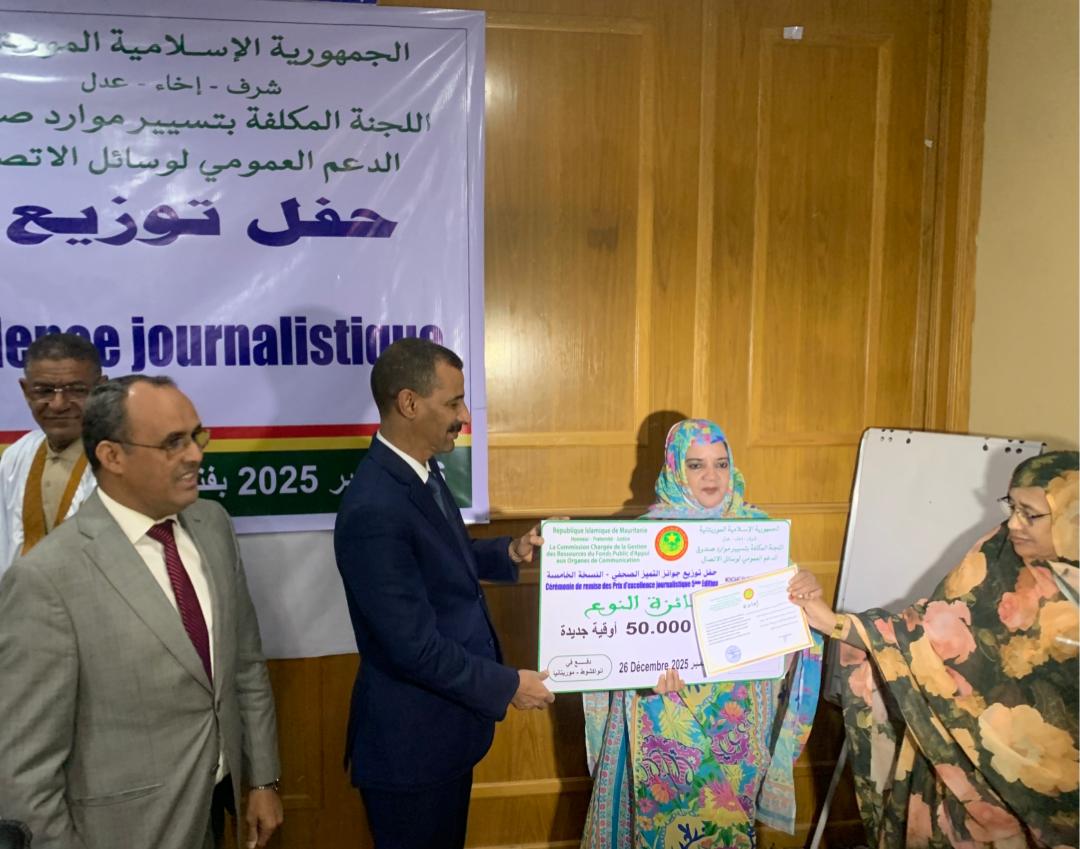 أخبار اليوم. نظمت لجنة تسيير وتوزيع موارد صندوق الدعم العمومي لوسائل الاتصال، صباح اليوم الجمعة بفندق موري سانتر في نواكشوط، حفل توزيع جوائز النسخة الخامسة من التميز الصحفي التي ينظمها الصندوق منذ خمس سنوات
