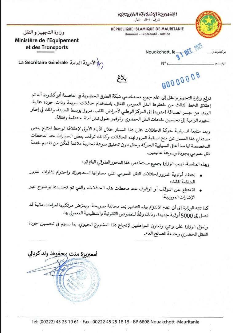 وأوضحت الوزارة أن مخالفة الإجراءات قد تُعرّض مرتكبيها لغرامات مالية تصل إلى 5000 أوقية جديدة، وذلك وفقًا للنصوص القانونية والتنظيمية المعمول بها.