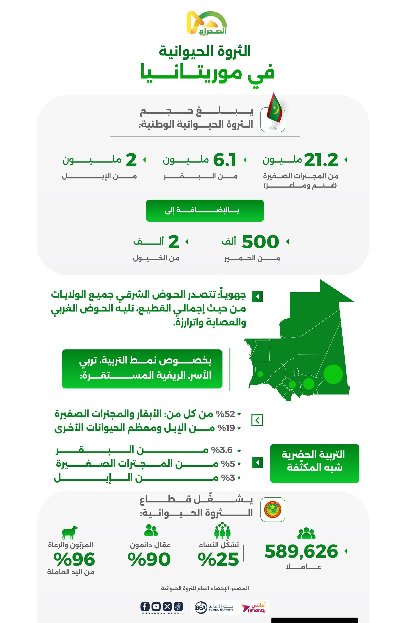 أخبار اليوم. كشفت معطيات رسمية أن قطاع الثروة الحيوانية في موريتانيا يشغل نحو 600 ألف شخص، ربعهم من النساء.