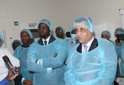 استهل الوزيران الأولان الجولة بزيارة مصنع إنتاج مستلزمات غسيل الكلى في بلدية “بوت”، أول مصنع من نوعه في السنغال والمنطقة، بطاقة إنتاجية تصل إلى 10 ملايين لتر سنويًا.
