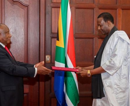 أخبار اليوم. – سلّم السفيرُ الموريتاني في جنوب إفريقيا أمادي كامارا أوراق اعتماده للرئيس الجنوب الإفريقي سيريل رامافوزا، بصفته سفيرا فوق العادة وكامل السلطة لموريتانيا لدى جنوب إفريقيا. وقالت الوكالة الموريتانية للأنباء إن كامارا نقل لرئيس جمهورية جنوب إفريقيا، تحيات الرئيس محمد ولد الغزواني، وتمنياته له بالسعادة والصحة وللشعب الجنوب إفريقي الشقيق بالتقدم والازدهار. […]