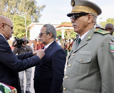 أخباراليوم. – وشح الرئيس محمد ولد الغزواني اليوم الجمعة القائد الجديد للأمن المقرب له المساعد أول محمد المختار محمد الأمين الزامل، “بميدالية الشرف من الدرجة الأولى”. ووشح ولد الزامل إلى جانب عدة شخصيات مدنية وعسكرية تم توشيحها صباح اليوم في القصر الرئاسي، خلال حفل أقيم تخليدا للذكرى الخامسة والستين للاستقلال الوطني. وتولى ولد […]