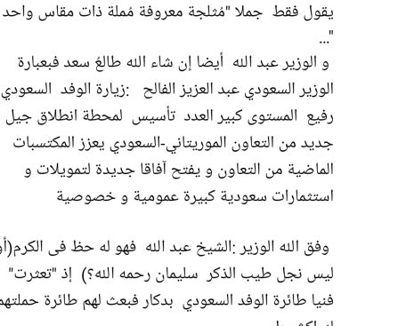 أخبار اليوم. قال السفير الموريتاني بالسعودية المختار ولد داهي إن وزير الشؤون الاقتصادية والتنمية عبد الله ولد سليمان ولد الشيخ سيديا طالع سعد فهو نعمَ الوزيرُ كفاءة و خطابة .. وأضاف ولد داهي في تعليقه على خطاب ولد الشيخ سيديا في افتتاح الملتقى الموريتاني السعود حول الاستثمار في موريتانيا: “كذا تكون خطب الوزراء ..ممتازة التحرير..مكتنزة […]