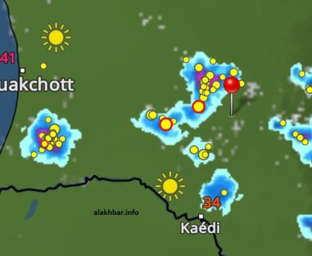 أخباراليوم. – تشير آخر معطيات الطقس في أجواء موريتانيا إلى انتشار سحب ماطرة من خفيفة إلى متوسطة على عدة مناطق من البلاد. وتؤكد هذه المعطيات انتشار السحب الماطرة على جنوب ولاية تكانت، ومناطق من ولايات العصابة، وكوركل، إضافة لوسط وشمال البراكنة، وجنوب الترارزة. ويتوقع بحول الله تعالى أن تؤدي هذه السحب الماطرة إلى […]