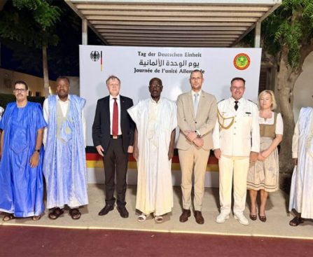 أخبار اليوم. نظمت سفارة جمهورية ألمانيا الاتحادية مساء اليوم الخميس في نواكشوط حفل استقبال بمناسبة الذكرى الخامسة والثلاثين ليوم الوحدة الألمانية. ومثّل الحكومةَ في هذا الحفل معالي وزير الشؤون الخارجية والتعاون الإفريقي والموريتانيين في الخارج، السيد محمد سالم ولد مرزوك، والمستشار برئاسة الجمهورية السيد هارونا اتراوري. وفي كلمة له بالمناسبة، عبّر السفير الألماني المعتمد لدى […]