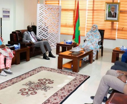 أخبار اليوم. استقبلت معالي وزيرة التجارة والسياحة السيدة زينب بنت أحمدناه، زوال اليوم الخميس، بمكتبها ممثل برنامج الغذاء العالمي في موريتانيا سعادة السيد آليو ديونغ. وتناول اللقاء علاقات التعاون القائم بين موريتانيا وهذه الهيئة الأممية وسبل تعزيزه وتطويره خاصة في مجالات تدخل الوزارة.. جرى اللقاء بحضور السادة: آمادو الحاج گي الأمين العام للوزارة، گيس چلل […]