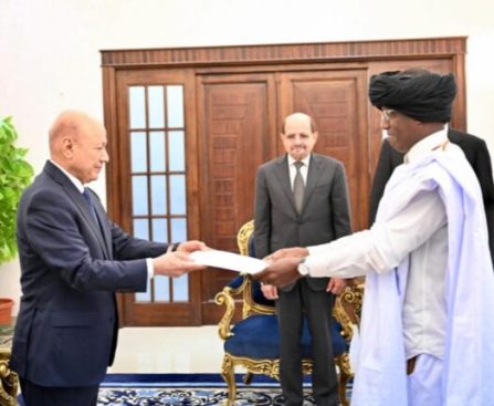 أخبار اليوم. قدم سعادة السيد محمد الأمين ولد إبراهيم، اليوم الخميس، في قصر معاشيق بالعاصمة المؤقتة عدن، أوراق اعتماده لفخامة الدكتور رشاد محمد العليمي، رئيس مجلس القيادة الرئاسي اليمني، بصفته سفيرا فوق العادة وكامل السلطة للجمهورية الإسلامية الموريتانية لدى جمهورية اليمن. وعقب مراسم تقديم أوراق الاعتماد، نقل سعادة السفير إلى فخامة الرئيس العليمي تحيات […]