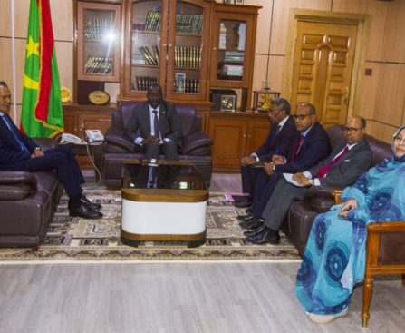 أخبار اليوم. استقبل معالي وزير العدل، السيد محمد ولد اسويدات، اليوم الخميس في مكتبه بنواكشوط، سفير المملكة المغربية المعتمد لدى بلادنا، سعادة السيد حميد شبار. وتطرق اللقاء لمجالات التعاون القائم بين البلدين الشقيقين وسبل تطويره وتعزيزه، خاصة فيما يتعلق بمجالات تدخل الوزارة. جرى اللقاء بحضور الأمين العام للوزارة، السيد محمد أحمد عيده، والمستشار […]