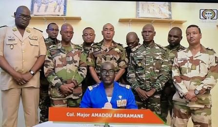 وكالة أخبار اليوم في النيجر الجيش يعلن السيطرة على الحكم في البلاد وتعليق العمل بالدستور وتشكيل مجلس وطني للإنقاذ وإغلاق الحدود وفرض حظر للجوال جاء ذلك في بيان تلاه الناطق الرسمي باسم المجموعة عبر التلفزيون الرسمي للنيجر .