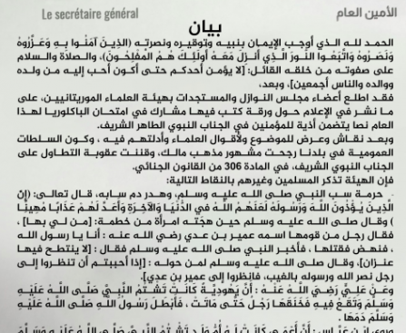 وكالة أخبار اليوم طالبت هيئة العلماء المورتيتانيين بقتل صاحب(ة) ورقة امتحان الباكلوريا المسيئة للجناب النبوي «إن ثبتت نسبتها إليه»، داعية إلى الابتعاد عن التظاهر والحشد». وجاء في بيان صادر عن الهيئة أن عقوبة قتل ساب النبي محمد صلى الله عليه وسلم ثابتة شرعا ومنصوصة قانونا، مستعرضة أقوال العلماء التي تؤكد أنه لا يستتاب […]