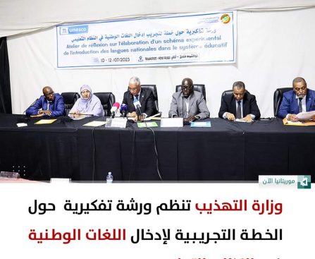 وكالة أخبار اليوم نظمت وزارة التهذيب الوطني صباح اليوم الإثنين في نواكشوط ورشة تفكيرية حول الخطة التجريبية لإد خال اللغات الوطنية في النظام التعليمي، بالتعاون مع اليونسكو. وزير التهذيب الوطني وإصلاح النظام التعليمي، المختار ولد داهي، لدى افتتاحه لأعمال الورشة أكد أهميتها اتناول أهم المحاور الأساسية التي تهم القطاع وهو تطوير وترقية تدريس اللغات […]