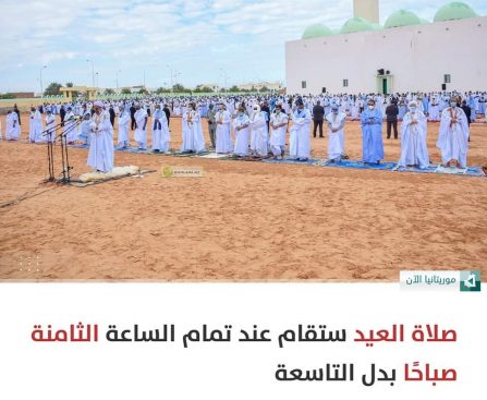 وكالة أخبار اليوم أفادت الوكالة الموريتانية للأنباء أن صلاة عيد الأضحى المبارك، ستقام يوم غد الأربعاء، في باحة جامع عبد الله بن عباس بنواكشوط، عند الساعة الثامنة صباحا، وذلك بعد أن جرت العادة أن تقام الصلاة عند حدود الساعة التاسعة صباحا. ومن المنتظر أن يحضر صلاة العيد في جامع بن عباس، رئيس الجمهورية، إلى […]
