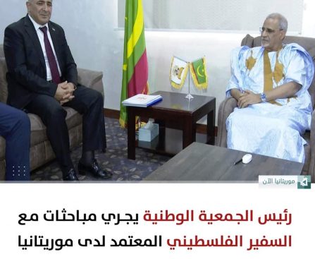وكالة أخبار اليوم استقبل رئيس الجمعية الوطنية النائب محمد بمب ولد مكت ،صباح اليوم الاثنين بمكتبه وفدا من سفارة دولة فلسطين برئاسة، محمد الأسعد؛ سفير دولة فلسطين المعتمد في موريتاني. وبحث اللقاء لآفاق التعاون بين البلدين الشقيقين وسبل تعزيزه وتطويره، خاصة في المجال البرلماني. حضر اللقاء الأمين العام للجمعية الوطنية عبد الله ولد صالح.