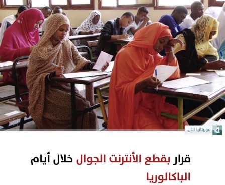 وكالة أخبار اليوم أعلنت الحكومة الموريتانية أن خدمة الانترنت الجوال سيتم تعليقها مؤقتا خلال ساعات امتحان البكالوريا، طيلة أيام الامتحان الذي يبدأ من 19 يونيو الجاري حتى 22 من الشهر نفسه. وقالت سلطة التنظيم في إشعار لها، إنه سيتم قطع خدمة الانترنت النقال يوم 19 يونيو من 7:45 صباحا إلى الساعة 10:00 ومن الساعة 15:20 […]