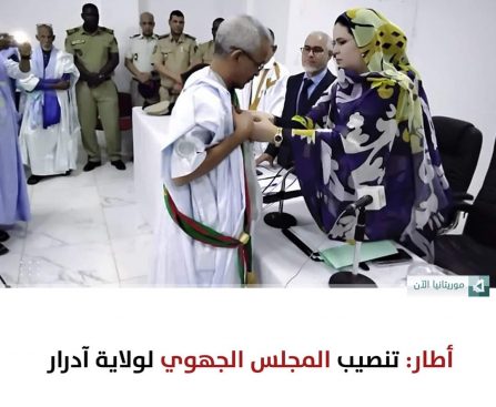 وكالة أخبار اليوم أشرفت وزيرة الوظيفة العمومية والعمل، زينب بنت احمدناه، اليوم السبت في أطار، على تنصيب رئيس المجلس الجهوي لولاية آدرار، محمد ولد اشريف ولد عبد الله، وذلك بحضور والي آدرار السيد عبد الله ولد محمد محمود. وتم خلال حفل التنصيب انتخاب النواب الثلاثة لرئيس المجلس الجهوي، وهم السادة: اعلي ولد اشويخ، سيدي […]