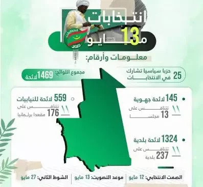 وكالة أخبار اليوم تخوض خمسة وعشرون حزبا (هي مجموع الأحزاب المرخصة في موريتانيا) غمار الانتخابات البلدية والنيابية والجهوية، التي تفتح صناديقها أمام ما ينوف على 1.5 مليون ناخب. وتتنافس في هذه الانتخابات 1469لائحة، منها 1320 لائحة بلدية، و559 لائحة للنيابيات، و145 لائحة جهوية. ويمكنكم معرفة المزيد حول انتخابات الثالث عشر من مايو في […]