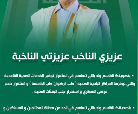 🔴 كلمة عن مرشح حزب الكرامة بنواذيبو… الرجل الوطني بامتياز!! القاسم بلالي، الرجل الوطني المخلص لمدينة نواذيبو، الذي عمل بجد، واخلاص، وإتقان، وكفاءة عالية، وأخلاق فاضلة.. من أجل بناء نواذيبو ! تحدثت مع العديد من سكان مدينة نواذيبو، العاصمة الاقتصادية للبلاد، فإذا الجميع يحترم النائب والعمدة القاسم.. كما يشهد له بتقريب الخدمة من المواطن، […]