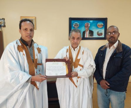 وكالة أخباراليوم إستلم النائب والعمدة: القاسم ولد بلالي تكريما مقدمًا من الإتحاد العربي للقوس والسهم ، عرفانا بالمجهودات الكبيرة التي يبذلها في خدمة الشباب والرياضة. سلّمه التكريم رئيس الإتحادية الموريتانية للرماية بالقوس: المخطار محمد معلوم ، رفقة المعد البدني للإتحاد.