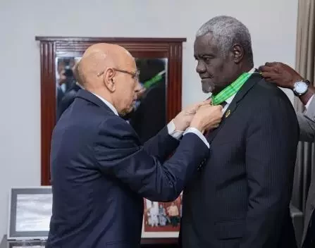 أخبار اليوم. وشح الرئيس محمد ولد الشيخ الغزواني، مساء اليوم السبت، في مقر السفارة الموريتانية في أديس أبابا، رئيس مفوضية الاتحاد الإفريقي، المنتهية ولايته موسى فكي محمد بوسام من رتبة قائد في وسام الاستحقاق الوطني الموريتاني. كما وشح الرئيس غزواني مجموعة من كبار موظفي الاتحاد الإفريقي بأوسمة برتبة ضابط في نظام الاستحقاق الوطني، ويتعلق […]