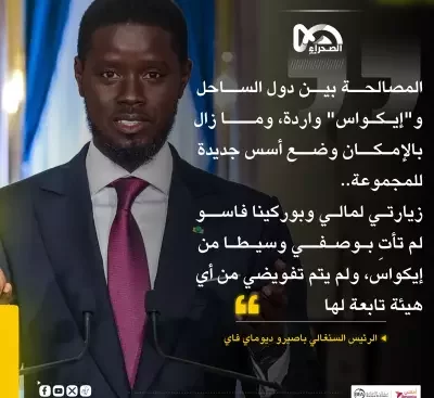 وكالة أخباراليوم. قال الرئيس السنغالي باسيرو ديوماي فاي، إن المصالحة بين مالي وبوركينا فاسو والمجموعة الاقتصادية لدول غرب إفريقيا “إيكواس” واردة. وأضاف ديوماي فاي، خلال زيارته لمالي، الخميس، أنه بالإمكان وضع أسس جديدة لمجموعة الإيكواس.