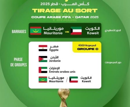 أخبار اليوم. وضعت قرعة كأس العرب فيفيا 2025، موريتانيا في مواجهة منتخب الكويت، في الدور التأهيلي لكأس العرب FIFA – قطر 2025. وفي حالة تأهله من هذا الدور سوف يلتحق بالمجموعة الثالثة، إلى جانب منتخبات مصر الأردن والإمارات في الدور الأول من البطولة. يذكر أن البطولة تنطلق فاتح ديسمبر المقبل في الدوحة.
