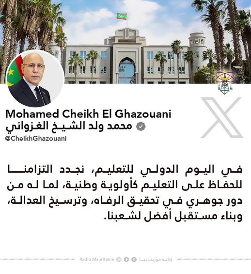 وكالة أخباراليوم تقدم الرئيس الموريتاني السابق معاوية ولد سيد أحمد الطائع، اليوم الخميس، بتعزية في وفاة العلامة والدكتور محمد المختار ولد اباه، وصفه فيها بأنه “شخصية فذة، وطالما كان…
