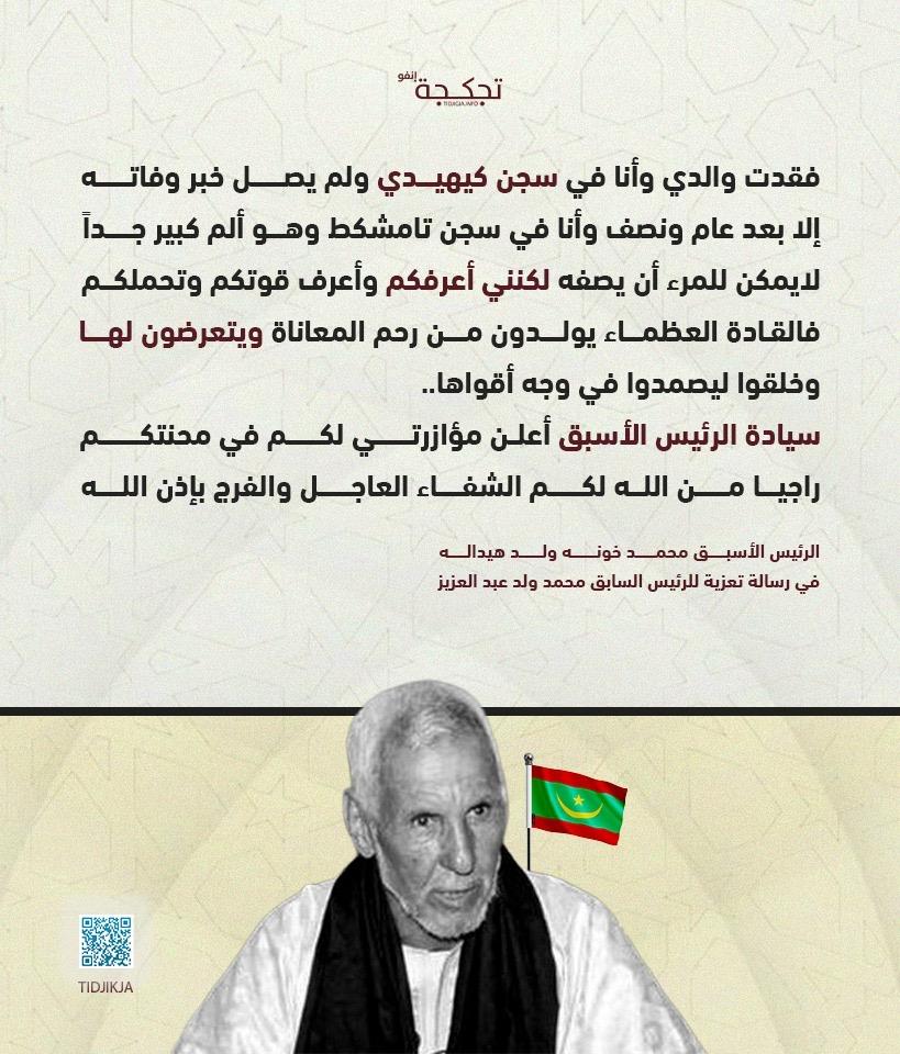 ولدهيداله لعزيز: أعرف قوتكم وتحملكم فالقادة العظماء يولدون من رحم المعاناة